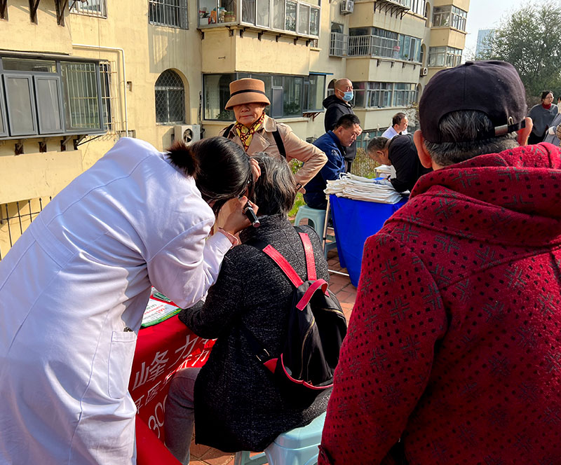 活动现场,来自多家公益企业的服务摊位一字排开,为社区居民提供了丰富多彩的服务项目。听力检测摊位前,老人们有序排队,专业医护人员耐心地为每位老人进行听力测试,并给出相应的健康建议。口腔检测摊位同样人头攒动,医护人员仔细地为居民检查牙齿,讲解口腔健康知识,提醒大家关注日常口腔卫生。视力检测摊位则吸引了众多中老年居民,他们纷纷表示,这样的检测对于及时发现眼部问题、保护视力非常重要。
